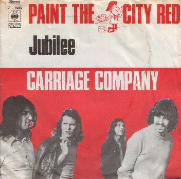 Their third vinyl appeared in the form of the “Feel Right / In Your Room” single, a highly capable effort not in the first place by the catchy A-side. It was the song “In Your Room” on the B-side who made impression. This was great heavy rock with screaming guitars, great organ and extra percussion. This would be the only single who got a release outside Belgium ( Italy & Germany ) although it was “In Your Room” who appeared there as A-side. It was written by their new singer Leslie Kent (from Luxenburg) who had replaced Greenslade. After this one it was quite a disappointment when in 1971 the new Carriage Company single was released. Both sides from the “Paint The City Red / Jubilee” record were very weak with almost no guitar on it.