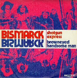 Brussels quintet Bismarck had their first vinyl exposure released in 1970. “Shotgun Express” was a powerful effort that set their name as “Brussels Blue Cheer”. The b-side was a more radio-friendly Chuck Berry song: “Browneyed Handsome Man”. This record was also released in a few country’s around Europe.