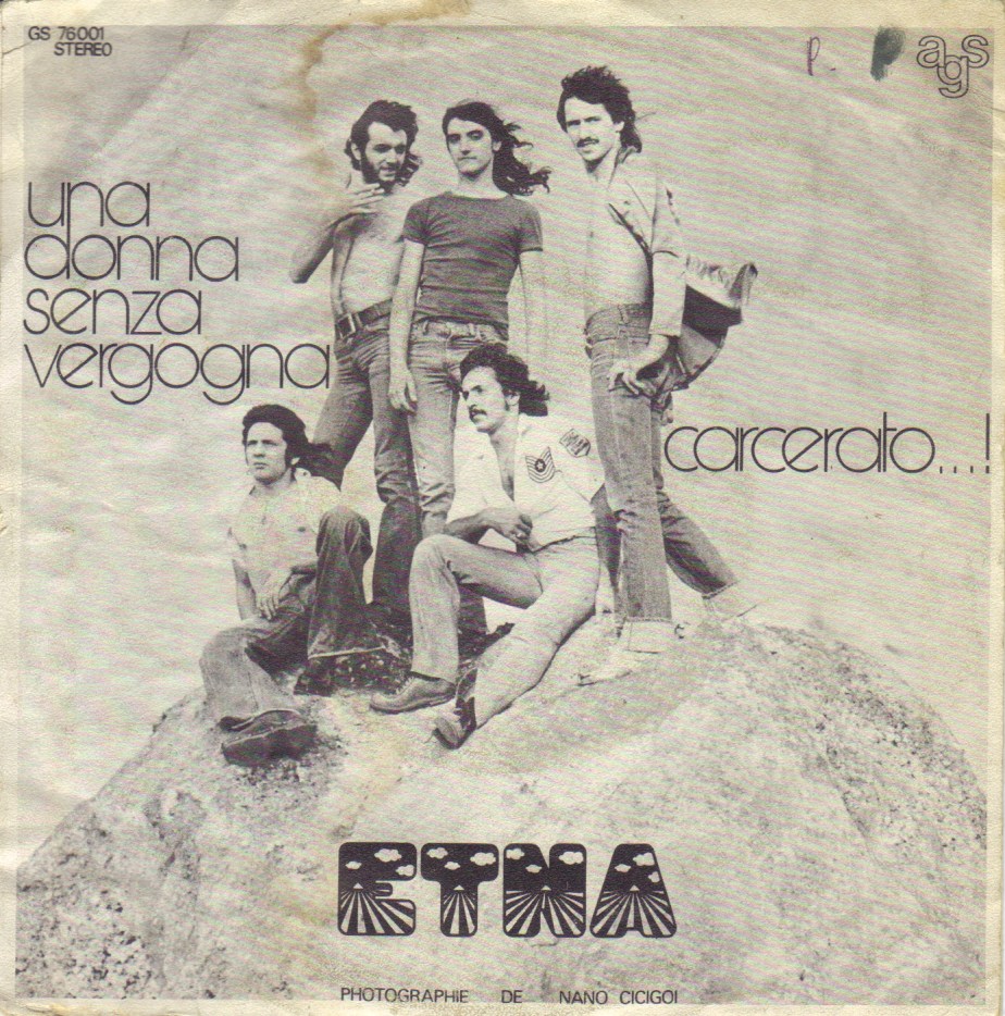 In the late sixties he had been a member of a successful local outfit named THE CLOSED who had released a single “Lovin’ / My Little Girl From Kentucky” on Hebra records. George liked what he heard in the studio and decided to join ETNA. Quickly he laid down the drum tracks on both songs. The single was released on AGS records (named after Serge) early 1976, and found its way to youngsters and jukeboxes in the region. Both songs….“Una Donna Senza Vergogna” and “Carcerato” were sung in Italian, another reference to the Cannella brothers’ Italian roots.
